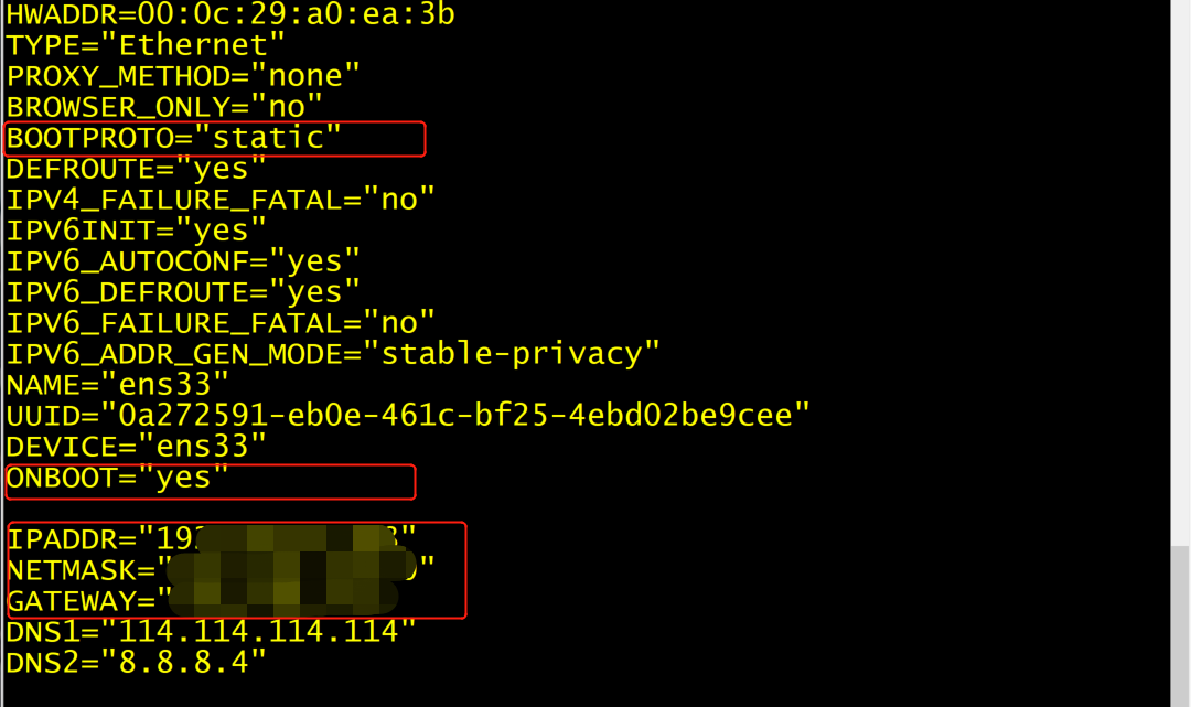 vim /etc/sysconfig/network-scripts/ifcfg-ens33