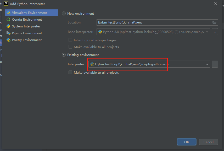 注意,之后的操作一定要在虚拟目录中的Scripts下进行操作,否则操作的就不是当前虚拟环境,而是全局环境了。