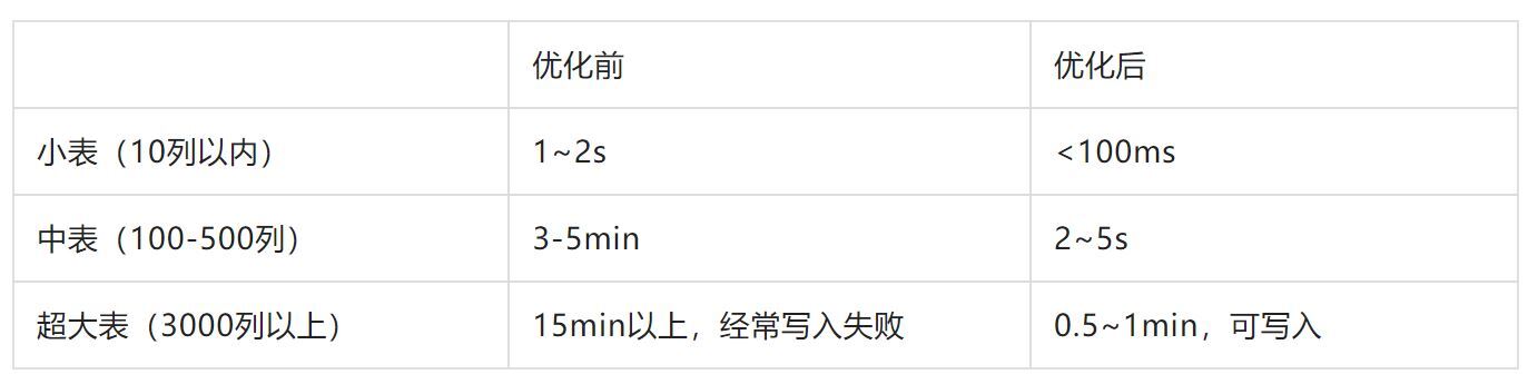 对于超大元数据的写入请求,也有比较严重的性能问题。比如超过3000列的写入,我们发现需要消耗接近15分钟。