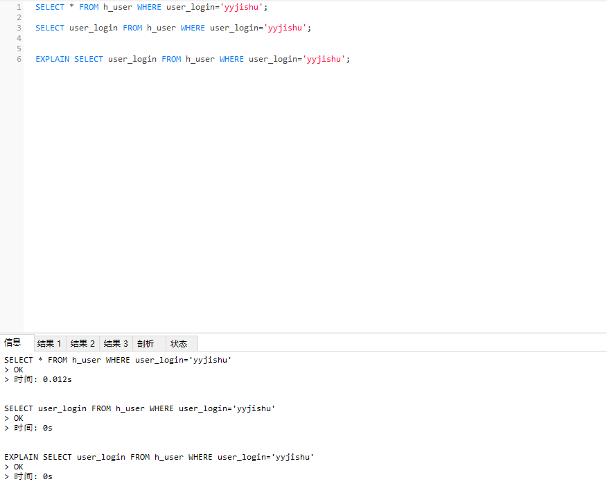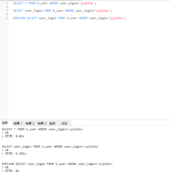 表数据 h_user表,数据量5887785