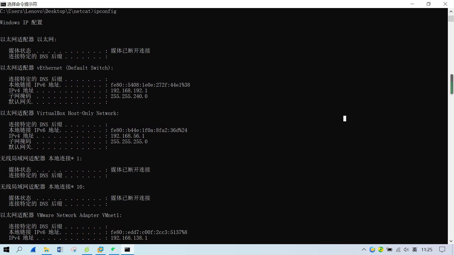 接着我们打开cmd通过ipconfig查看windows下的IP地址