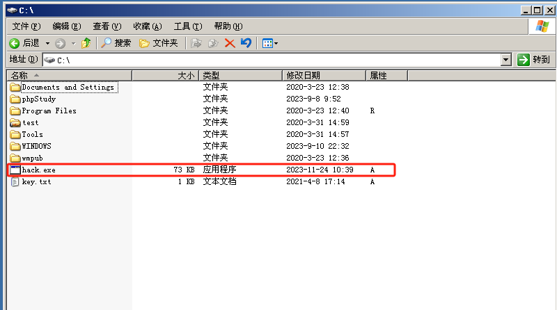 发现恶意程序在C盘根目录,且修改时间为2023-11-24 10:39