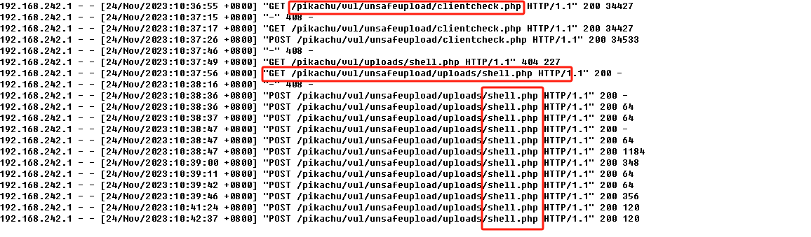 文件上传漏洞>上传webshell 时间为2023-11-24 10:37>上传远控木马 时间为2023-11-24 10:39