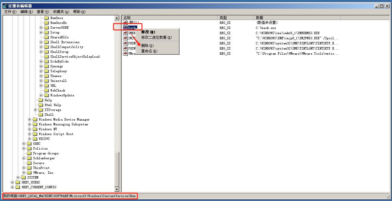 添加启动项命令为 reg add "HKLM\SOFTWARE\Microsoft\Windows\CurrentVersion\Run" /v hack /t REG_SZ /d "C:\hack.exe"