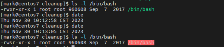 经过一分钟后,可以发现/bin/bash已经变成suid文件