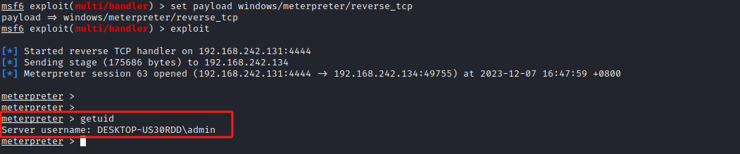 现在尝试通过msf利用目标服务器漏洞进行提权