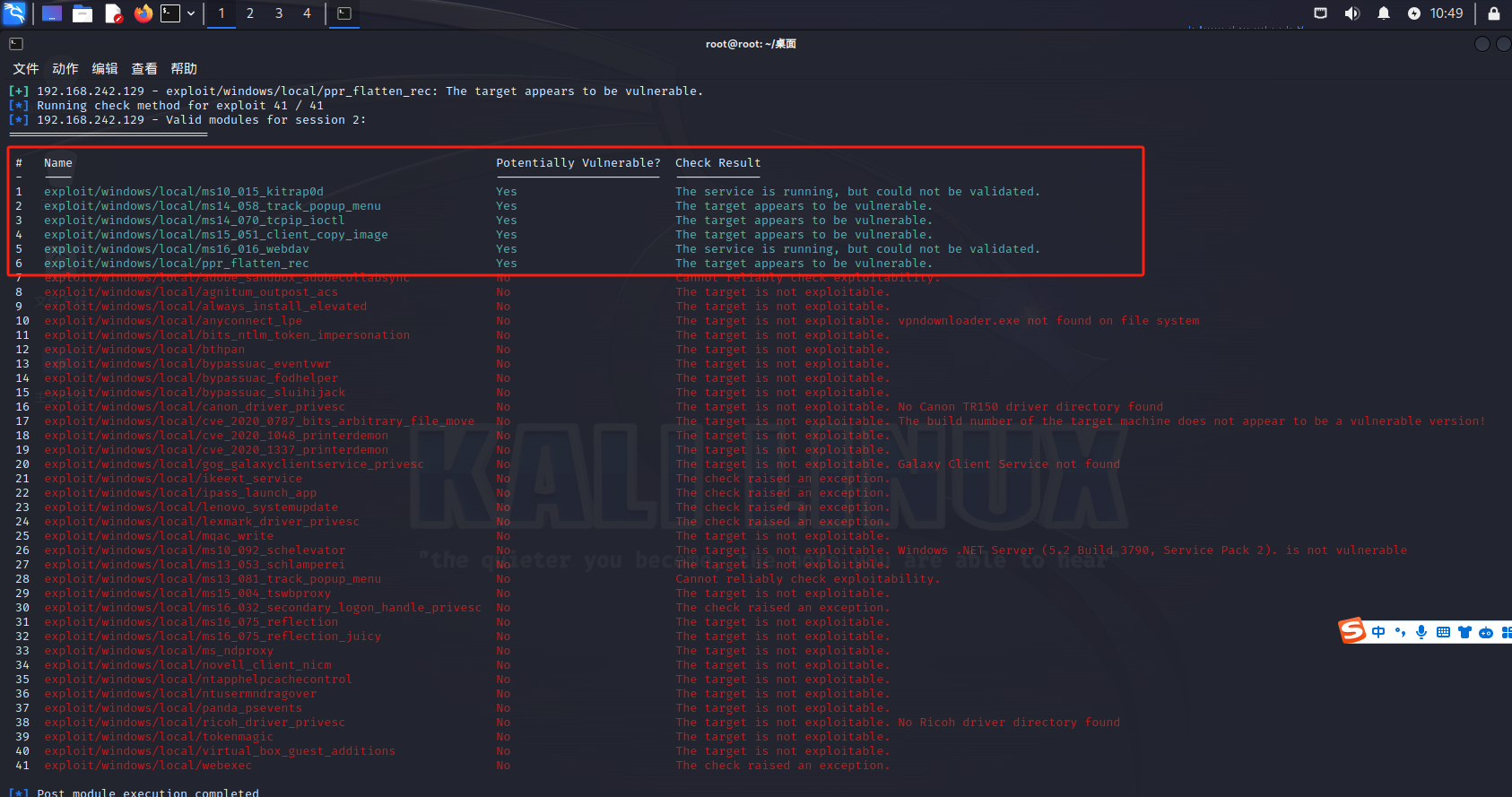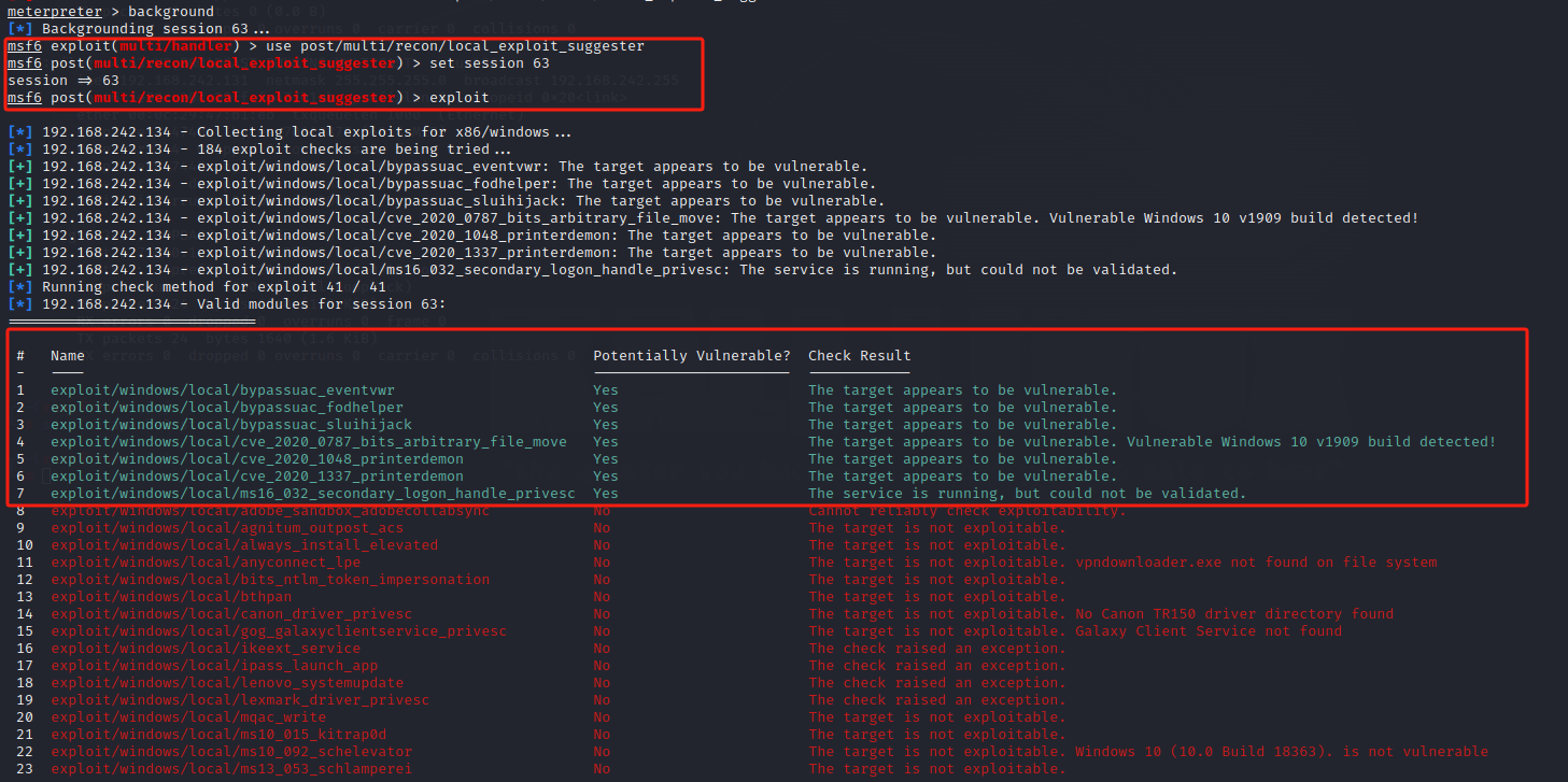 这里使用msf提供的漏洞匹配搜索功能,查看当前目标机器可能存在哪些漏洞