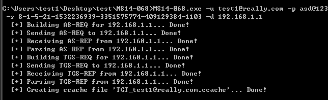 1首先利用ms14-068提权工具生成伪造的kerberos协议认证证书