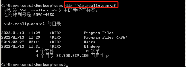 3测试是否能访问域控C盘目录,能访问则说明提升为域管理员