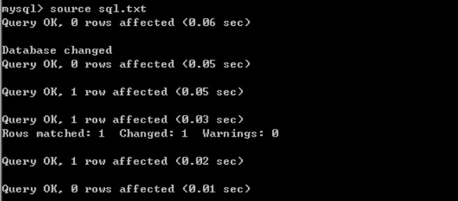 然后通过source命令,在目标数据库执行本地txt文件里的sql语句