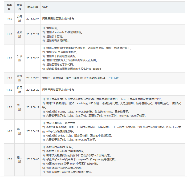 《阿里巴巴Java开发手册》全版本整理,包括最新的华山版、泰山版、嵩山版以及配套书籍《码出高效》