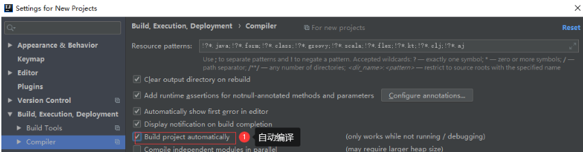 ”File/Settings/Build,Execution,Deployment/Compiler“