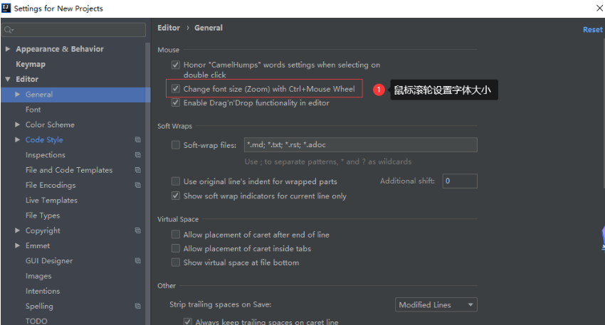设置在:“File | Settings | Editor | General”