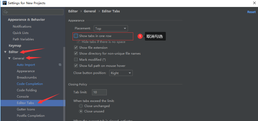 设置在:“File | Settings | Editor | General | Editor Tabs”