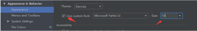 设置在:“File | Settings | Appearance & Behavior | Appearance“”