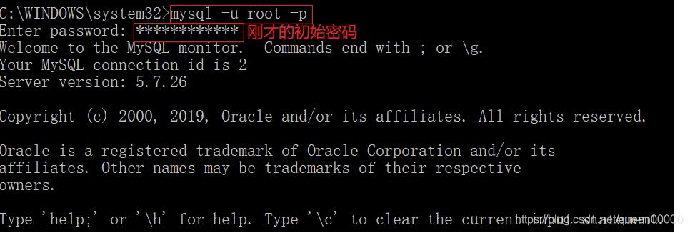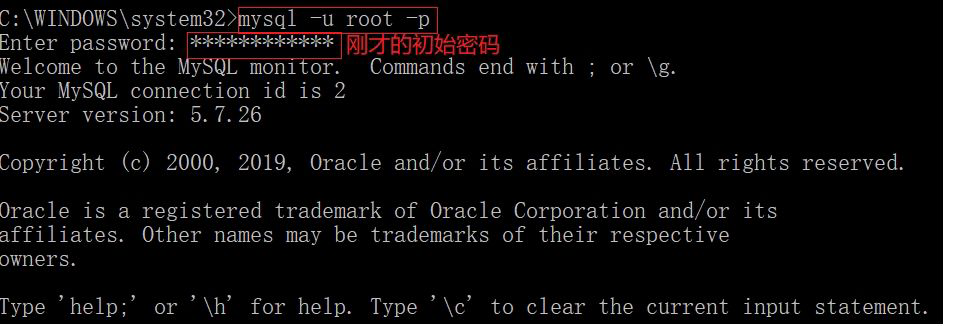 如果出现上面的弹窗表示MySQL服务已经正常启动,使用下述命令可以为’root’@’localhost‘修改连接MySQL服务的密码