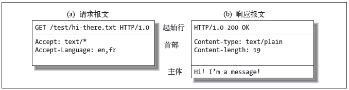 eg:请求报文中的第一行是Get 响应报文第一行是 说明出了什么情况