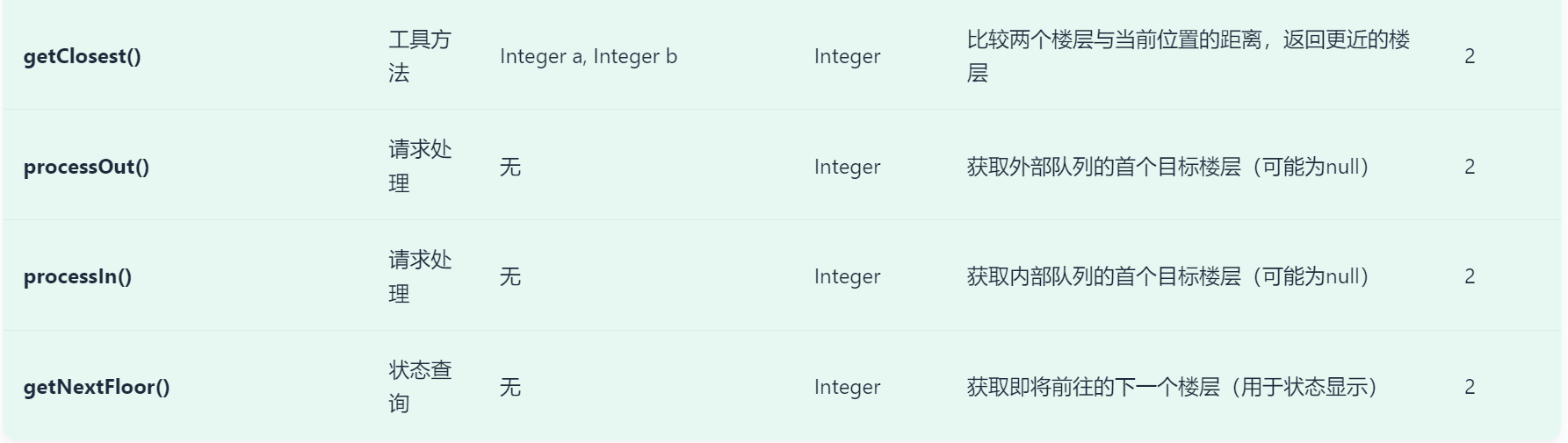 - 抽象层次提高:通过引入更抽象的概念和接口,隐藏了底层的复杂实现细节。例如定义了 MoveDirection 枚举来表示电梯运行方向,在代码中使用枚举值来进行方向相关的判断和操作,比直接使用数字或字符串更加直观和简洁,同时也减少了因底层实现带来的复杂度。