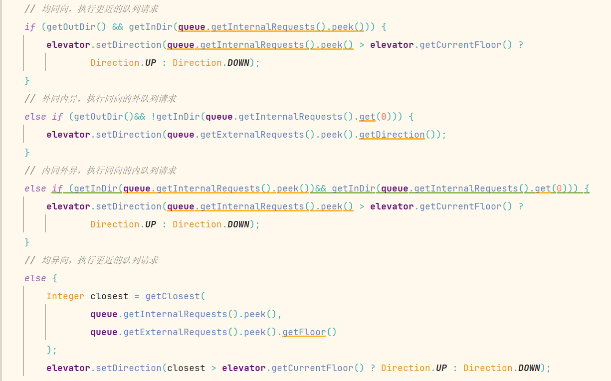 direction = (externalUp.peek().floor >= currentFloor) ? Direction.UP : Direction.DOWN;