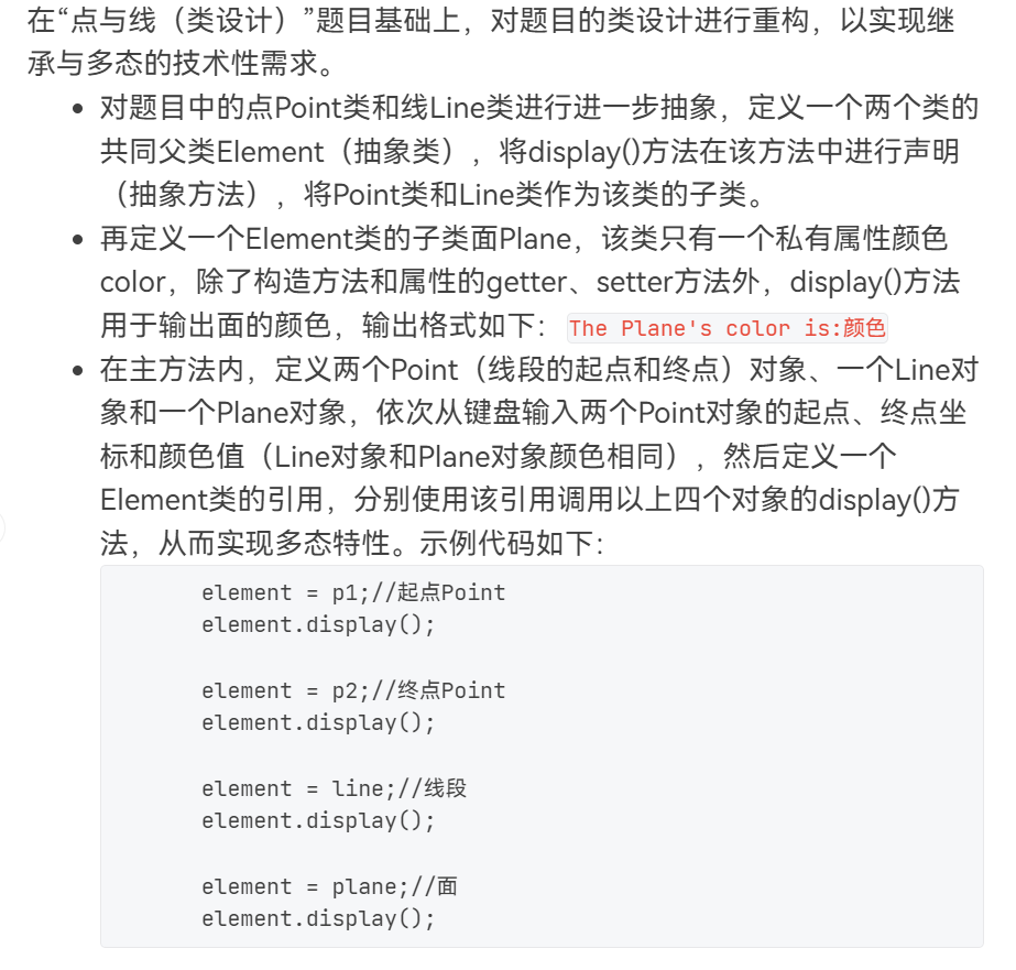 初见这道题时,我还是懵懂的,不了解多态,继承的含义,看着题目给的三个element分别使用了三次,不免产生了深深的疑惑,于是便去仔细了解了一下继承/多态: