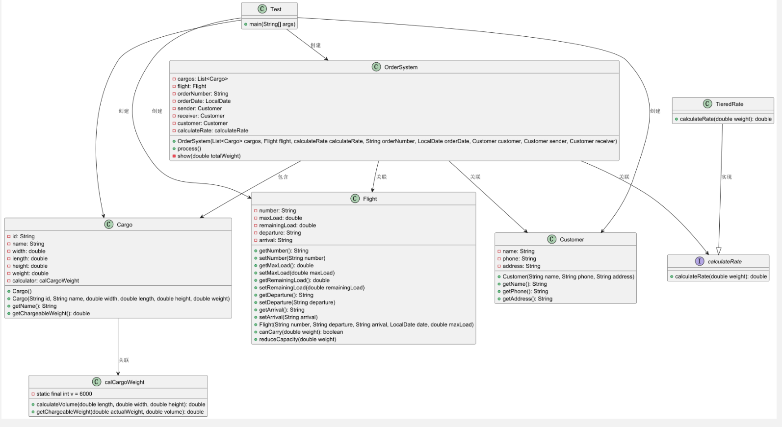 持有Customer(3个角色)、Flight、OrderItem集合和calculateRate策略