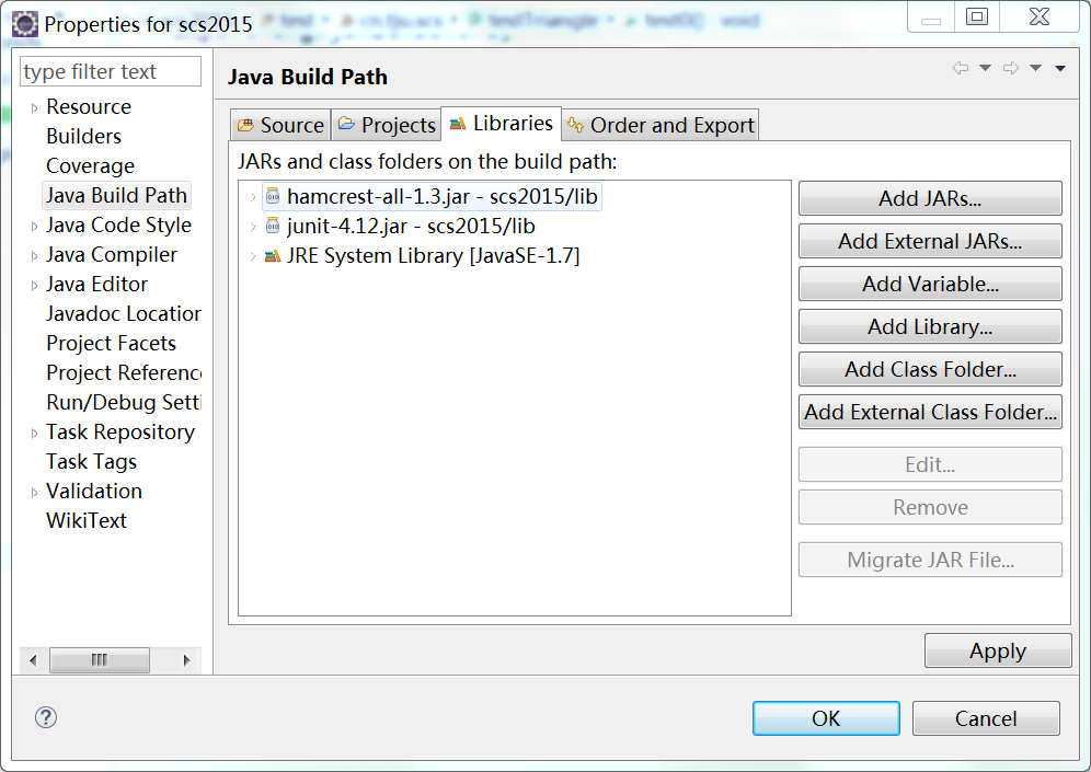 1. 在Eclipse中安装Junit和Hamcrest两个外部jar文件