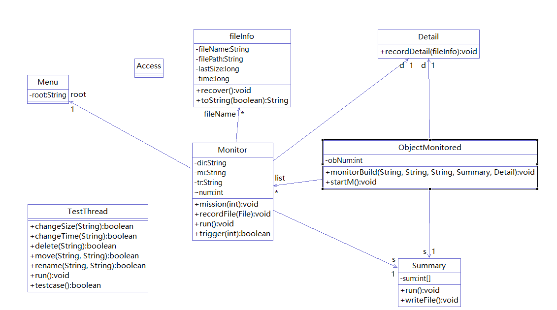 这次作业的bug很幸运没有格式问题,其实这次的输入输出的格式都是我们自己定义的,很开心,妈妈再也不用担心我的输出。但是还是错了很多点,一个是忘记判断触发器很任务的搭配是否合理,啪(抽自己一个耳光),还有就是TestThread没有写好,给测试者带来很多麻烦,关键是还写错了,所以导致虽然写对了,但是测不出来的感觉,另外就是由于我监控目录是对目录下的每一个非目录的文件进行监控的,所以当添加子目录和删除子目录的时候,我的程序自然就没有反应。