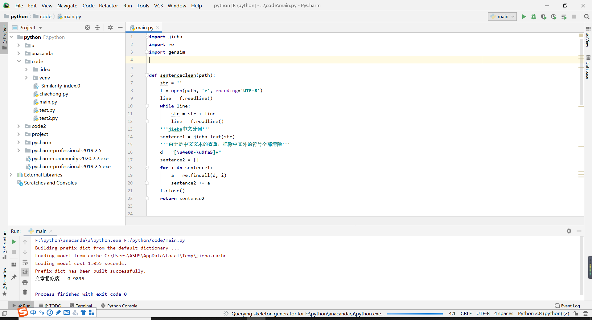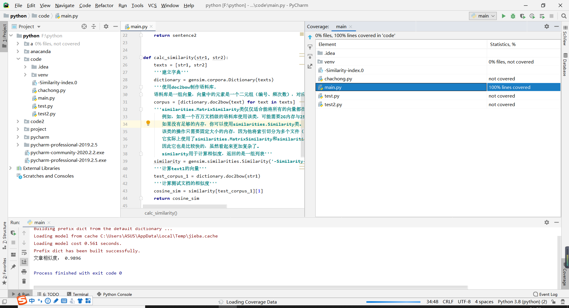 参考大佬们的思路并阅读gensim官方文档的翻译后,写出calc_similarity()函数:
