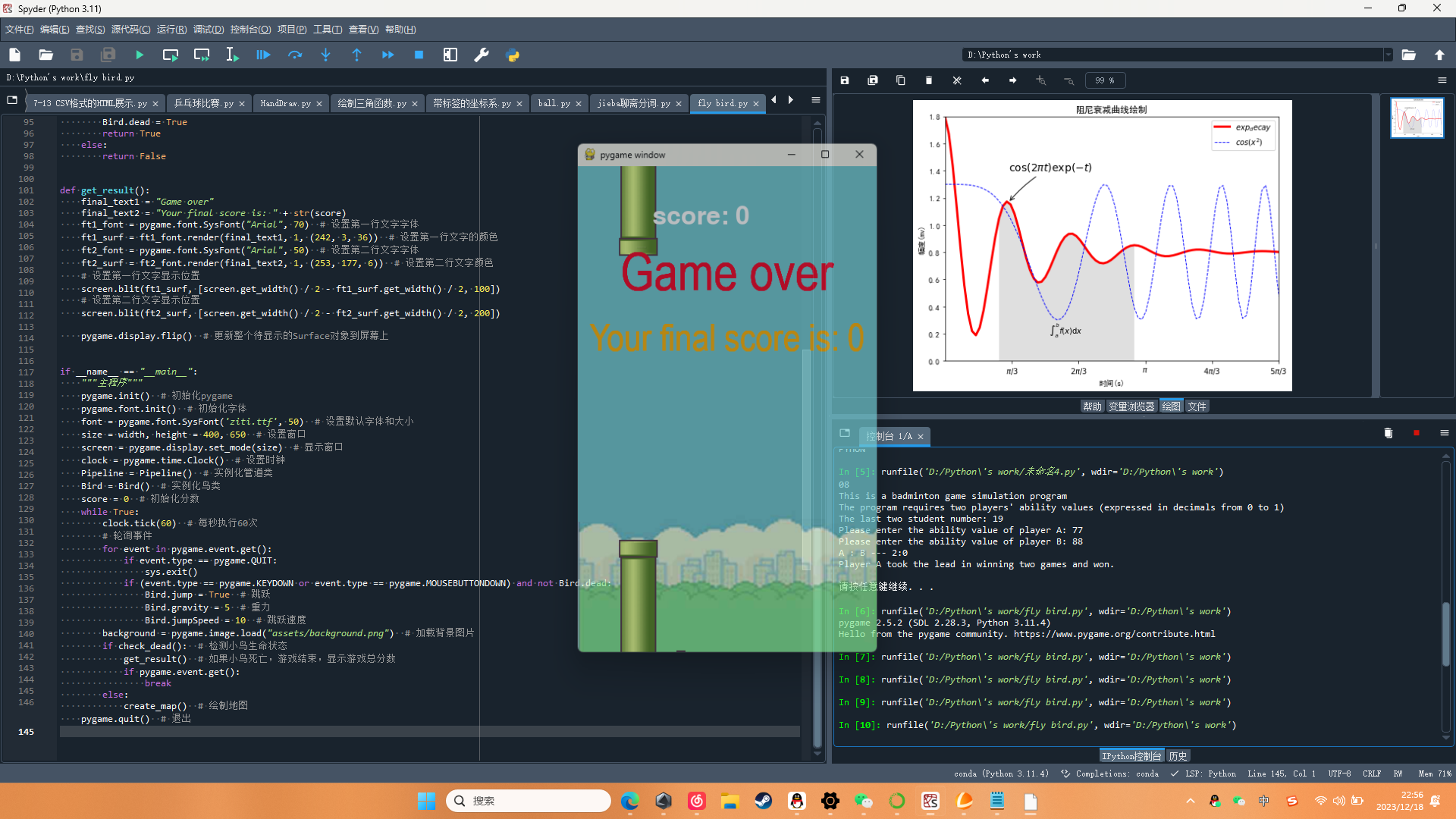 get_result() # 如果小鸟死亡,游戏结束,显示游戏总分数