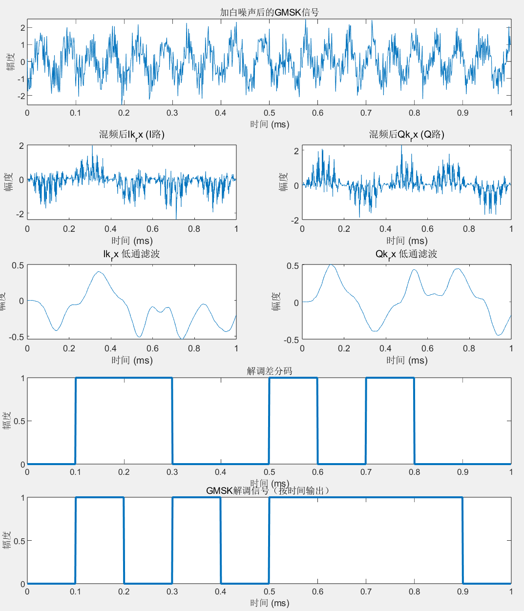 - 混频:由输入的GMSK信号直接与对应波形相乘即可