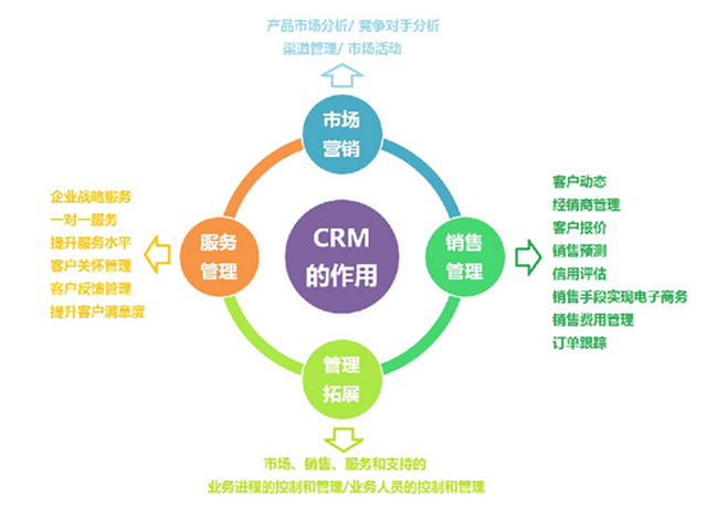 从管理理念上,ERP的管理理念是提高企业内部资源的计划和控制能力,讲究的是在满足客户、及时交货的同时最大限度地降低各种成本,通过提高内部运转效率来提高对客户的服务质量,可以说是以效率为中心。CRM的理念是以客户关系的建立、发展和维持为主目的。它们的理念在关注对象上有区别,与企业级的内部资源计划ERP相比,CRM更关注市场与客户。因为今天的客户既可以通过传统市场所提供的销售形式接触各类产品和服务,也可以方便地透过呼叫中心或互联网找到自己感兴趣的产品和服务。他们的消费方式由被动接受变为主动选择。所以CRM的作用主要在与客户直接接触的部门,它主要针对的是企业的市场营销、销售、服务部门,包括管理整个客户生命周期等各个阶段,为企业提供了对客户及所购产品的统计、跟踪和服务等信息化手段和功能。也就是说,如果说ERP是企业级的全面管理应用的话,CRM就是ERP的最前端,它的作用延伸到了ERP以前力所不能及的范围之外。 与ERP系统相比,CRM产品更专注于销售、营销、客户服务和支持等方面的管理,实际上,CRM的价值在于突出销售管理、营销管理、客户服务与支持方面的重要性,CRM系统本身可以看成广义的ERP的一部分,二者应该可以形成无缝的闭环系统。