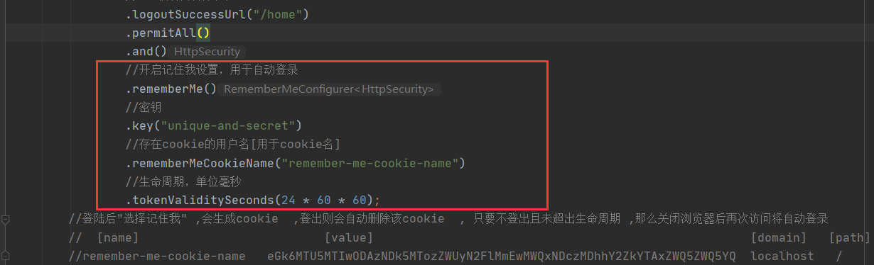 仍然是使用cookie存储登录数据,但是存储的数据 由 spring security自动创建 ,当登出后自动删除cookie,