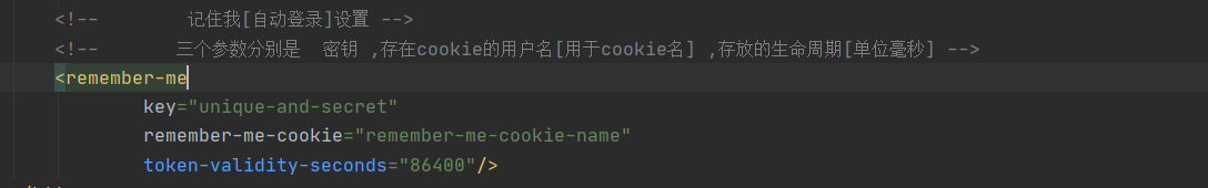 <?xml version="1.0" encoding="UTF-8"?> <beans:beans xmlns="http://www.springframework.org/schema/security" xmlns:xsi="http://www.w3.org/2001/XMLSchema-instance" xmlns:beans="http://www.springframework.org/schema/beans" xsi:schemaLocation="http://www.springframework.org/schema/security http://www.springframework.org/schema/security/spring-security.xsd http://www.springframework.org/schema/beans http://www.springframework.org/schema/beans/spring-beans.xsd"> <http> <!--设置不拦截的路径--> <!-- 登录路径--> <intercept-url pattern="/login" access="permitAll()"/> <!-- 静态文件路径--> <intercept-url pattern="/js/**" access="permitAll()"/> <intercept-url pattern="/css/**" access="permitAll()"/> <intercept-url pattern="/img/**" access="permitAll()"/> <intercept-url pattern="/webjars/**" access="permitAll()"/> <!-- 设置路径需要的指定权限 --> <intercept-url pattern="/hai" access="hasAuthority('admin')"/> <!-- 其他路径都需要拦截认证--> <intercept-url pattern="/**" access="isAuthenticated()"/> <!--Spring Security 4.0以后默认开启宽展请求伪造保护,这里配置禁用,不安全的操作。--> <csrf disabled="true"/> <!-- 表单登录指定路径--> <form-login login-page="/login"/> <!-- 登出操作--> <!-- 分别是清除session , 指定登出路径 ,指定登出成功后路径--> <logout invalidate-session="true" logout-url="/logout" logout-success-url="/login?logout"/> <!-- 记住我[自动登录]设置 --> <!-- 三个参数分别是 密钥 ,存在cookie的用户名[用于cookie名] ,存放的生命周期[单位毫秒] --> <remember-me key="unique-and-secret" remember-me-cookie="remember-me-cookie-name" token-validity-seconds="86400"/> </http> <!-- //在内存中进行注册公开内存的身份验证信息 // // 在内存中添加 用户名 ,密码 , 权限--> <authentication-manager> <authentication-provider> <user-service> <user name="user" password="password" authorities="ROLE_USER"/> </user-service> </authentication-provider> </authentication-manager> </beans:beans>