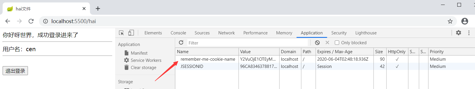 (3)登出后,查看cookie ,会发现cookie数据没有了,只剩下jsession