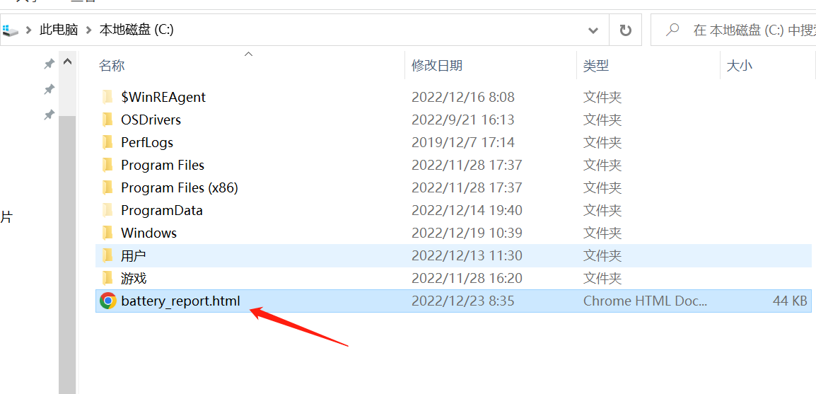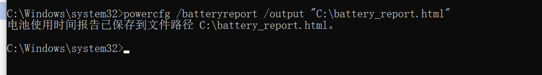 将报告文件放到c盘根目录 powercfg /batteryreport /output "C:\battery_report.html"