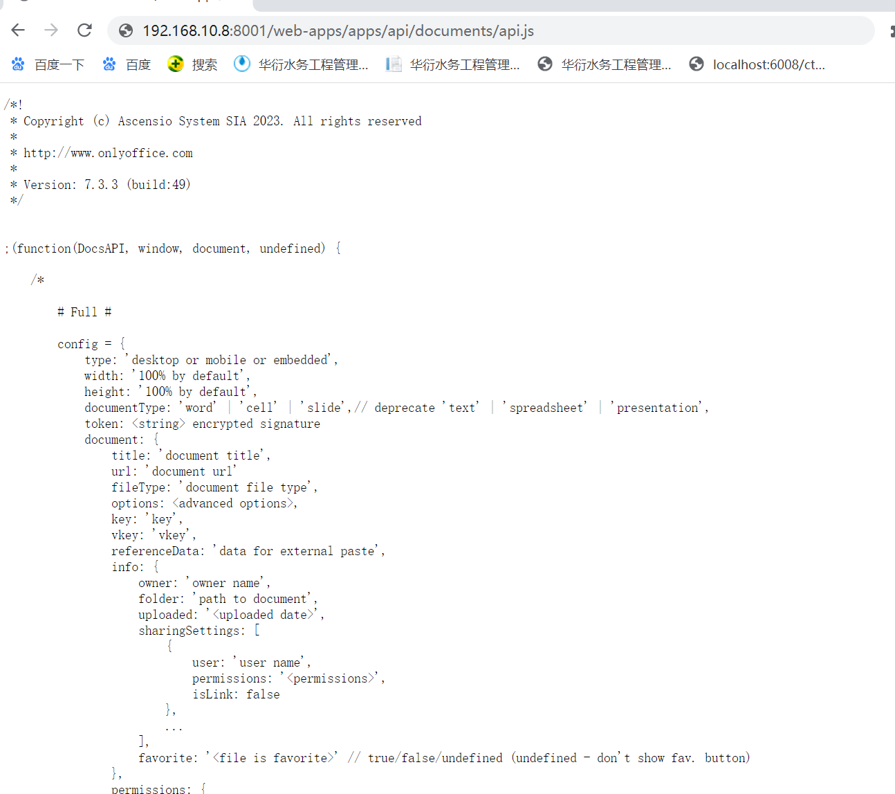 http://主机ip:8001/web-apps/apps/api/documents/api.js 可以下载web 需要的js 脚本