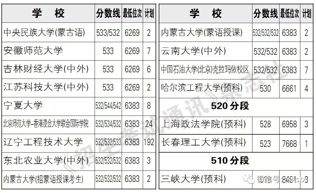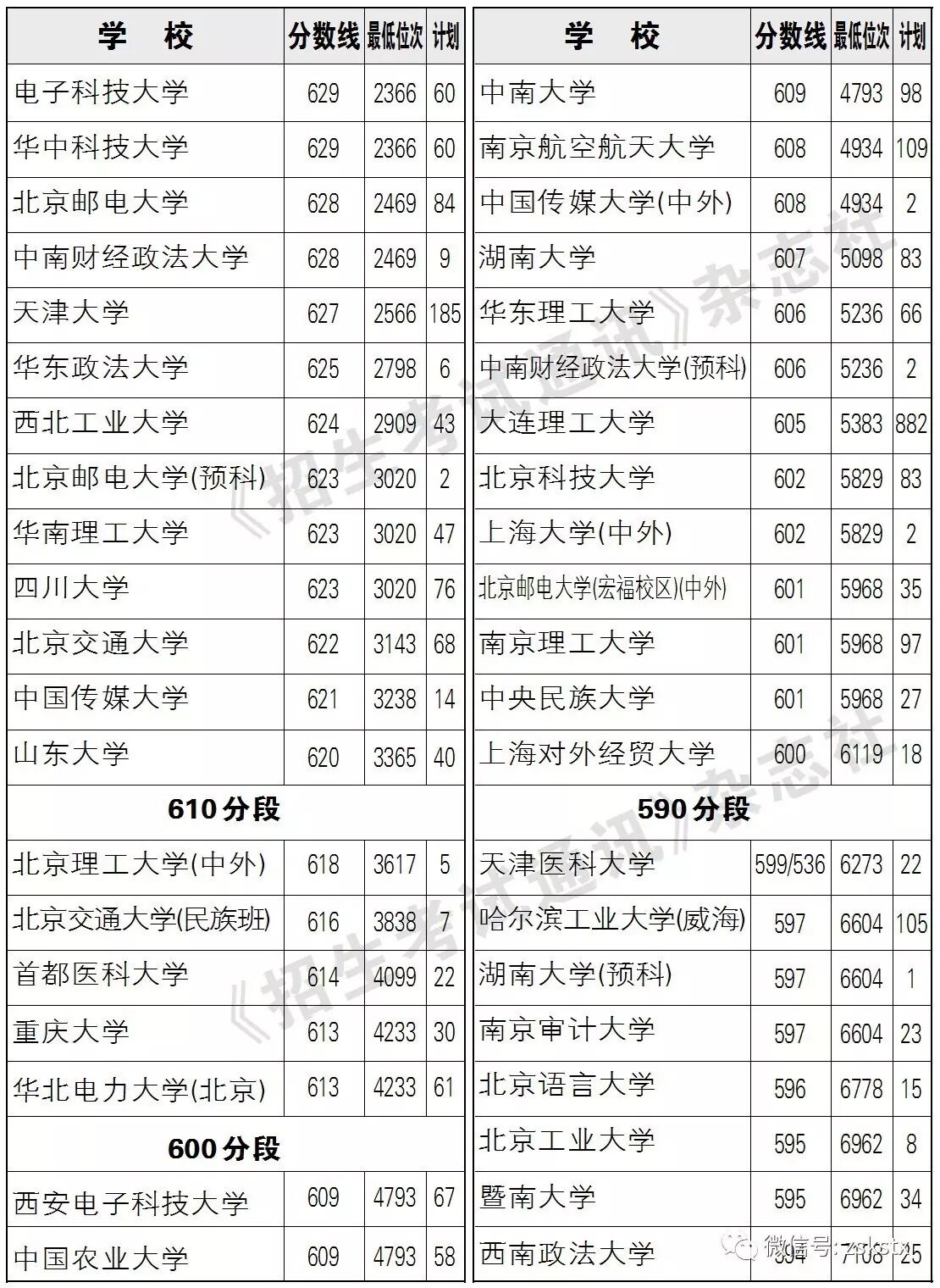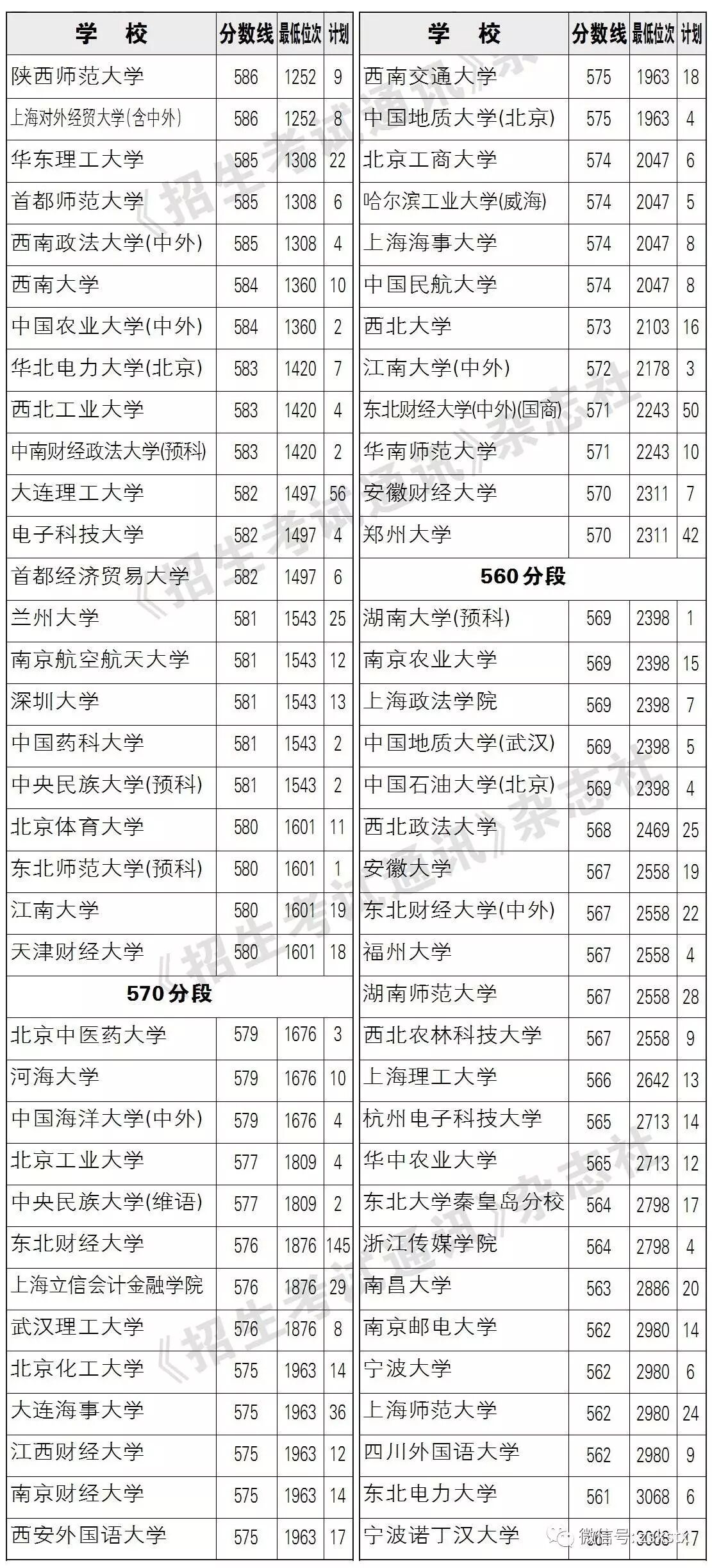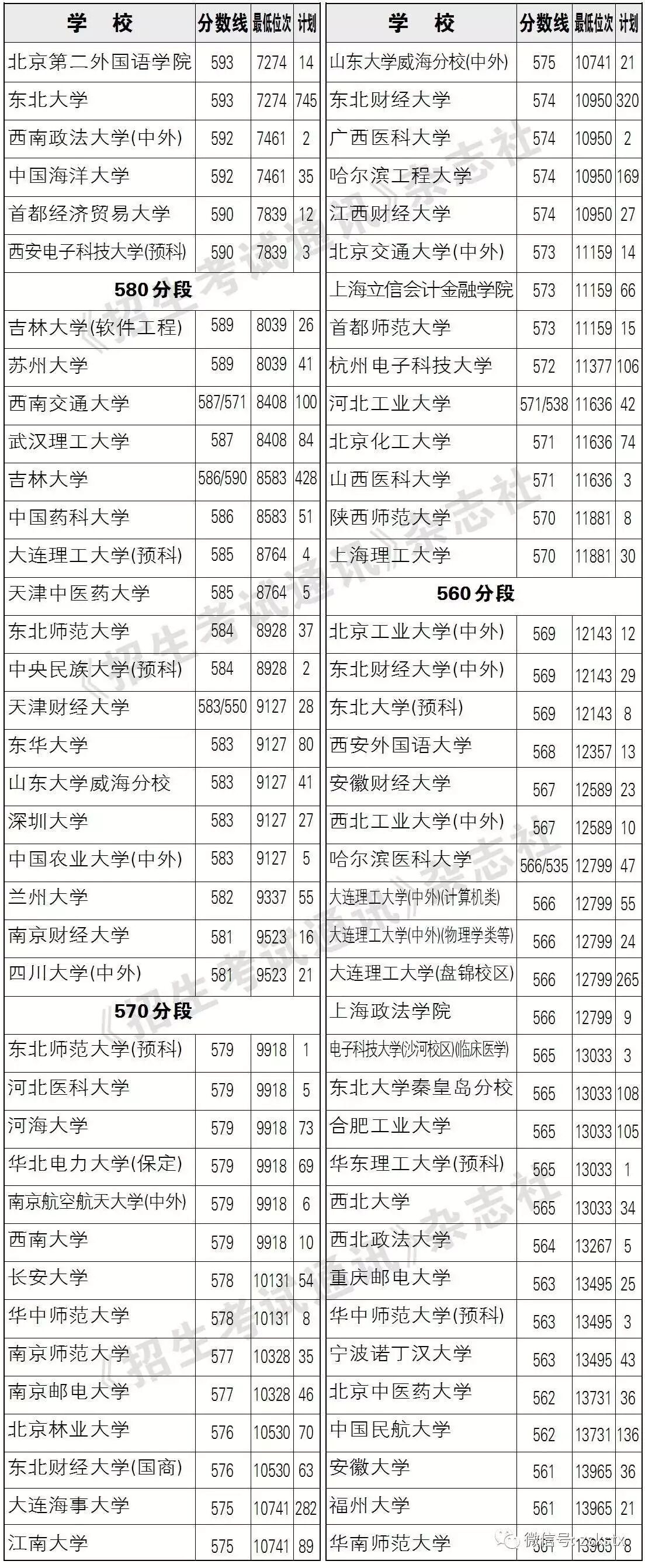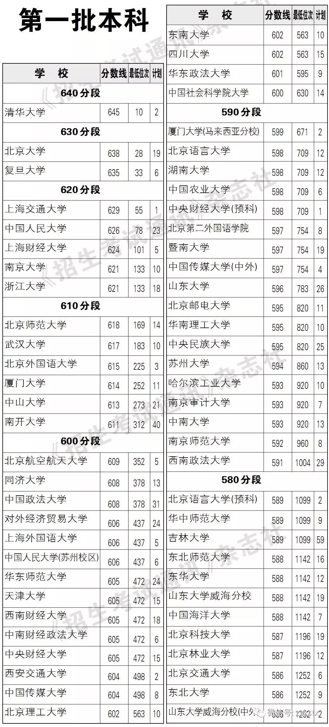 4.“最低位次”为该校首次投档分数线对照《一分一段表》产生的相对位次。