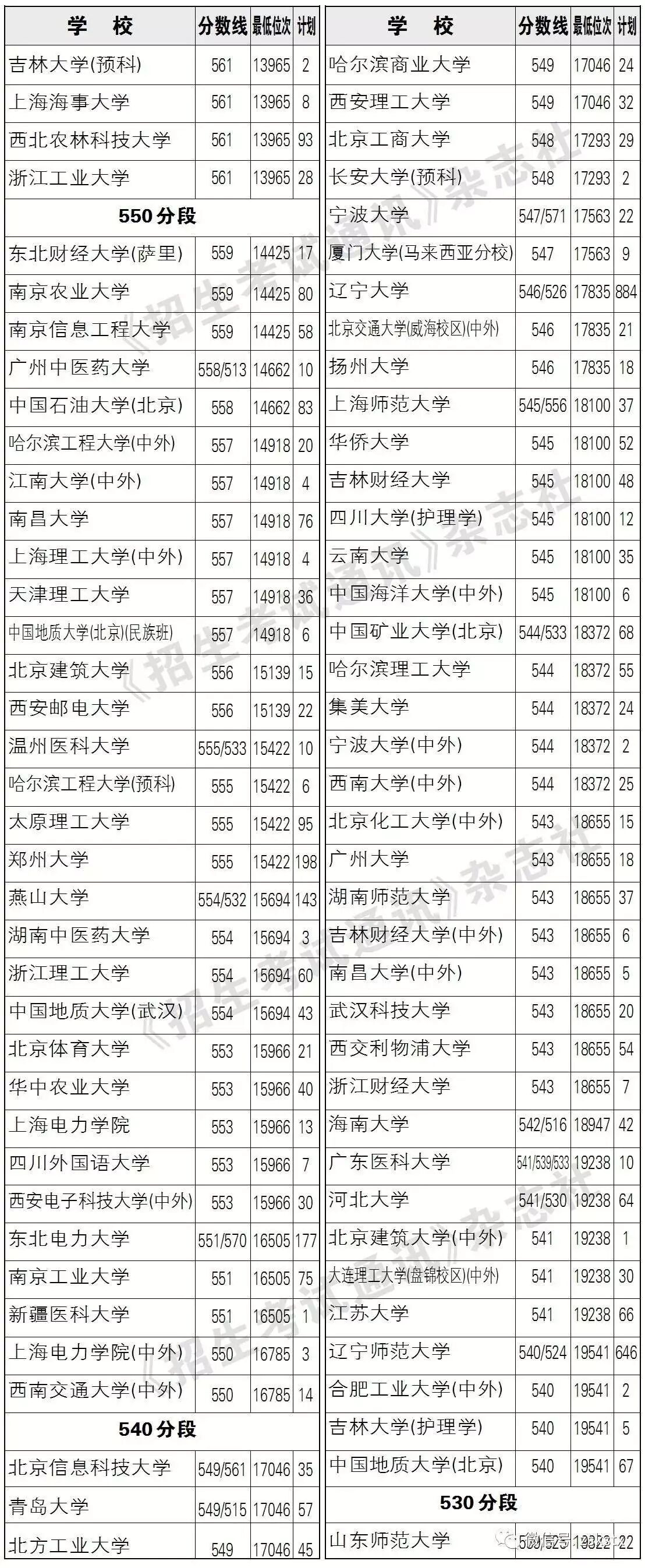 3.表格中“分数线”一栏“/”号后的数据为该校征集志愿分数线。