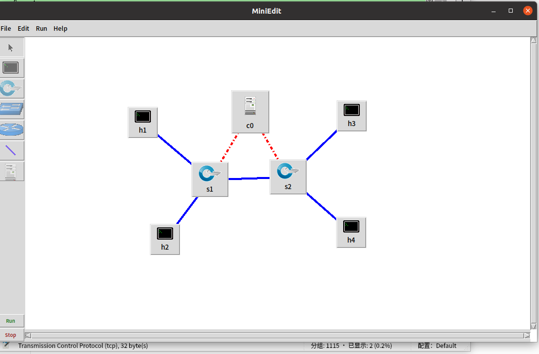 搭建下图所示拓扑,完成相关 IP 配置,并实现主机与主机之间的 IP 通信。用抓包软件获取控制器与交换机之间的通信数据。