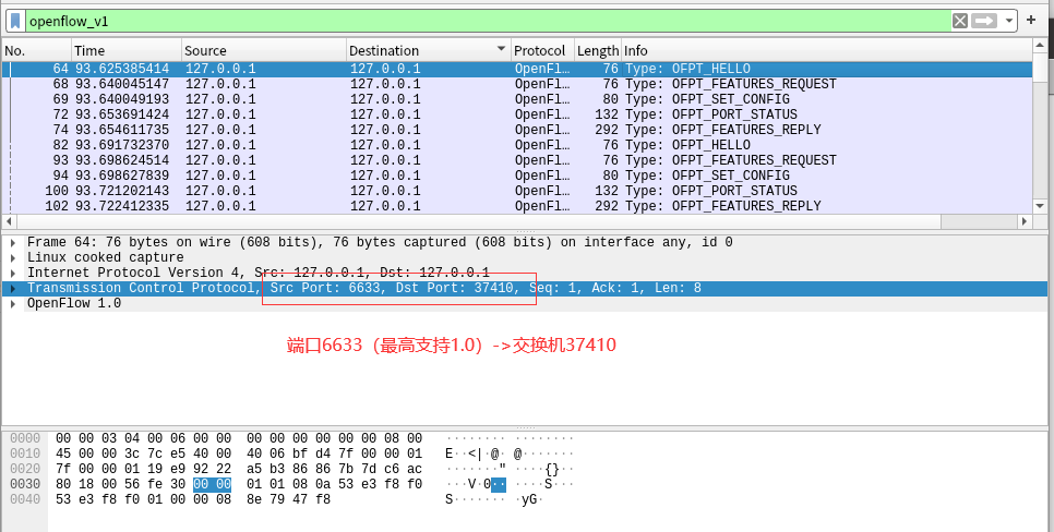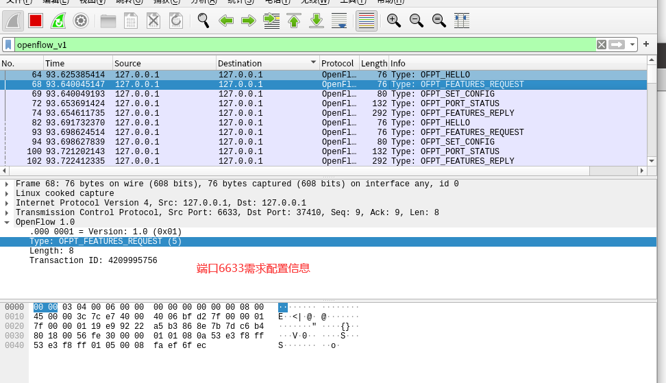 本次实验内容主要是对于openflow中信息的抓包,内容不算困难,主要是要理解抓取信息的涵义。