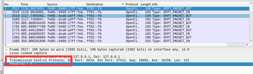- 能够运用 wireshark 对 OpenFlow 协议数据交互过程进行抓包;