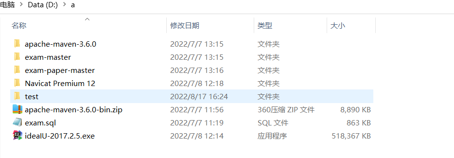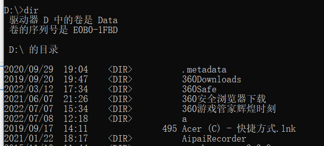查看当前目录下的所有文件 dir