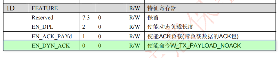 SI24R1_Write_Reg(NRF_WRITE_REG + FEATURE, 0x01);