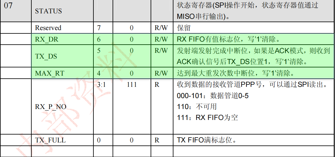 SI24R1_Write_Reg(NRF_WRITE_REG + STATUS, status);