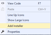 4、双击项目“MyWindowsService”进入"MyService"设计界面,在空白位置右击鼠标弹出上下文菜单,选中"Add Installer"