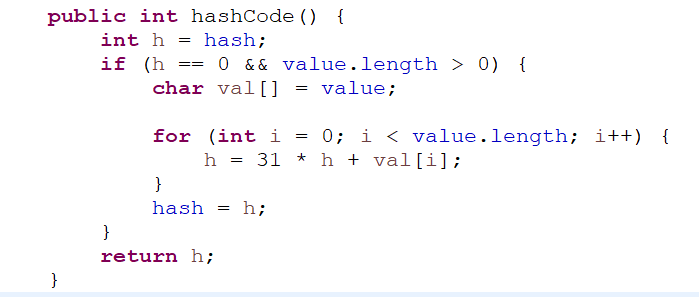 我们可以查看string类重写的hashcode方法计算哈希值如图