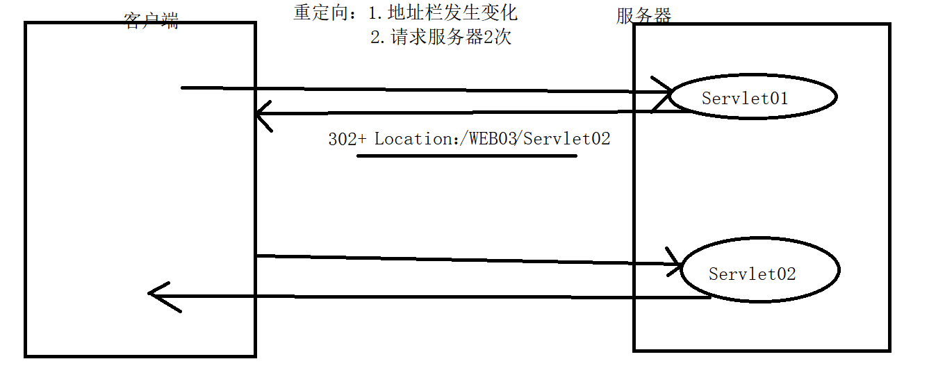 servlet对重定向进行了封装,我们可以用response的方法,sendredirect(string重定向的地址)。