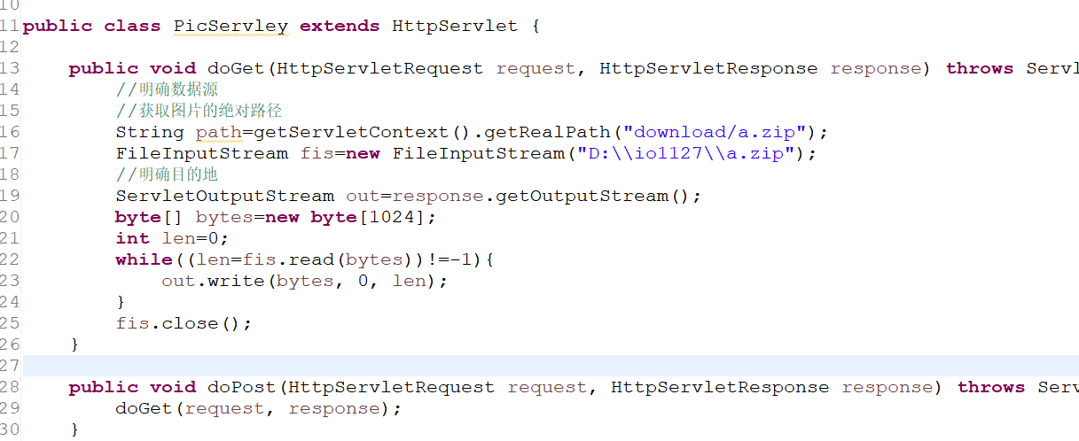 通过response设置响应体,使用该类的getwriter方法,获得字符流,通过write方法写的内容,传入response缓冲区,写完之后service方法结束,Tomcat引擎会监测service方法是否结束,去获取缓冲区的内容,在组装成一个http响应返回给客户端,我们输出中文是会打印出乱码,response缓冲区拉丁码表,客户端默认是jdk码表,我们要设置好缓冲区的码表,还要在代码中指定浏览器解析页面的解码方式response中的setcontexttype方法可以同步解决;同时还设置了字节流,这样我们就可以访问图片文档等文件,我们服务器不一定在同一个电脑执行,被访问的文件应该放到服务器下;我们编写一下 如图