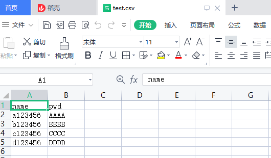 2.新建CSV文件和脚本放在同一目录下,参数文件内容如下图:(新建表格填写数据后另存为csv文件即可),也可直接使用txt文档(需要设置分隔符)
